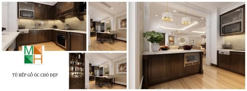 Mẫu tủ bếp gỗ tự nhiên phong cách hiện đại sang trọng tại biệt thự Gamuda Hà Nội