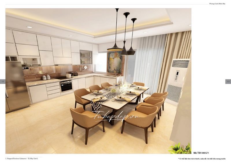 Đem lại một không gian phòng bếp liền phòng ăn mang tới sự gần gũi giữa các thành viên, mang tới không gian thông thoáng và hiện đại.