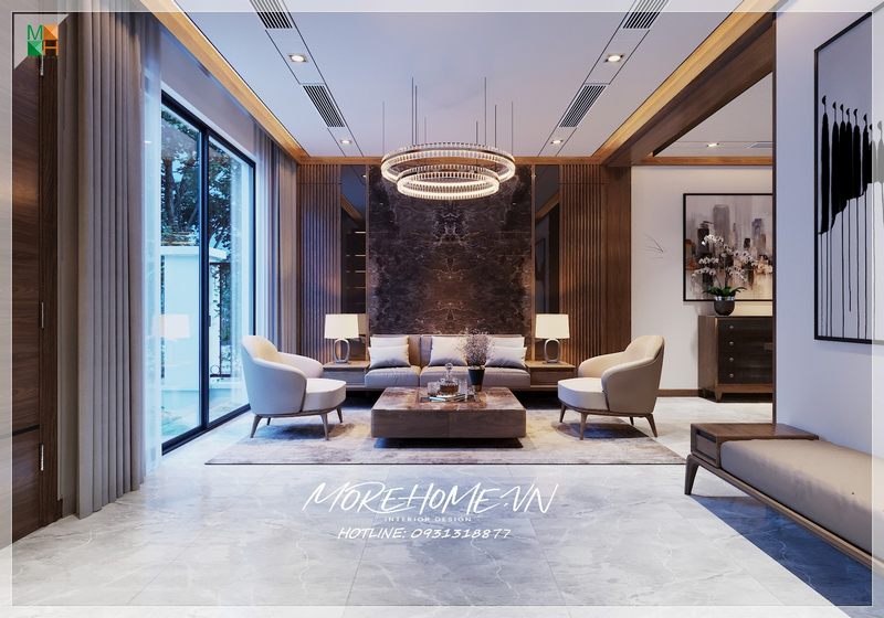 Phòng khách được trang bị bộ ghế sofa bọc da hiện đại cao cấp, là nơi thích hợp để đón tiếp khách và gia đình cùng nhau thật thoải mái.