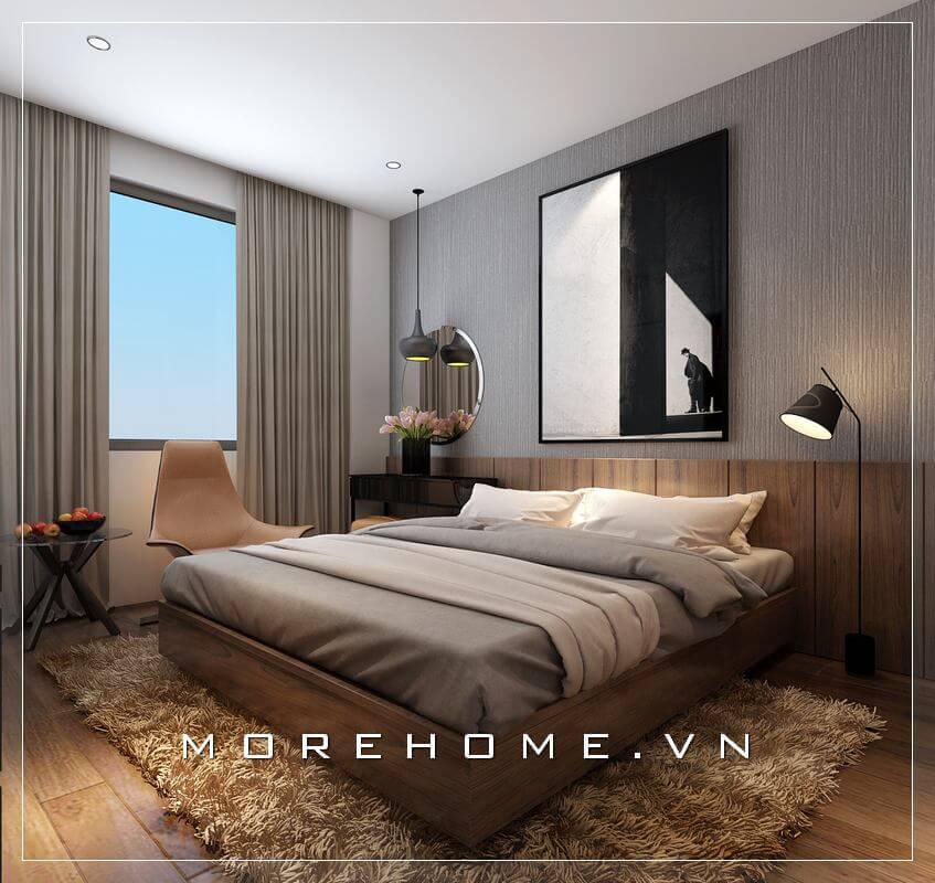 Thiết kế giường ngủ 2 người dành cho chung cư nhỏ phong cách hiện đại, trẻ trung