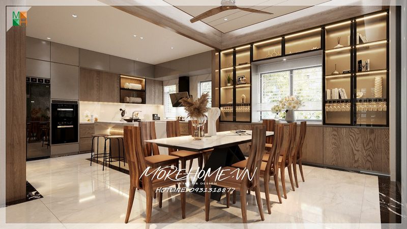 Công năng của mình đảo bếp có bồn rửa là một công cụ hỗ trợ giúp các mẹ nấu những bữa ăn ngon nóng hổi để thỏa mãn nhu cầu của gia đình sau một ngày làm việc dài.